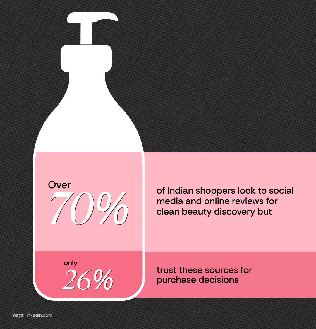 - Over 70% of Indian shoppers look to social media and online reviews for clean beauty discovery, but only 26% trust these sources for purchase decisions.